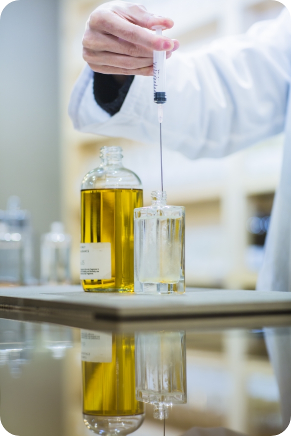 厳選された香料の中から、お客様自身が選んだ香りをフレグランスアドバイザーが丁寧に調合。手作業で仕上げられたフレグランスは、まさにその人だけの「私らしさ」を体現します。